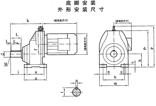 TXRX57-TXRX107斜齿轮减速电机底脚安装外形安装尺寸
