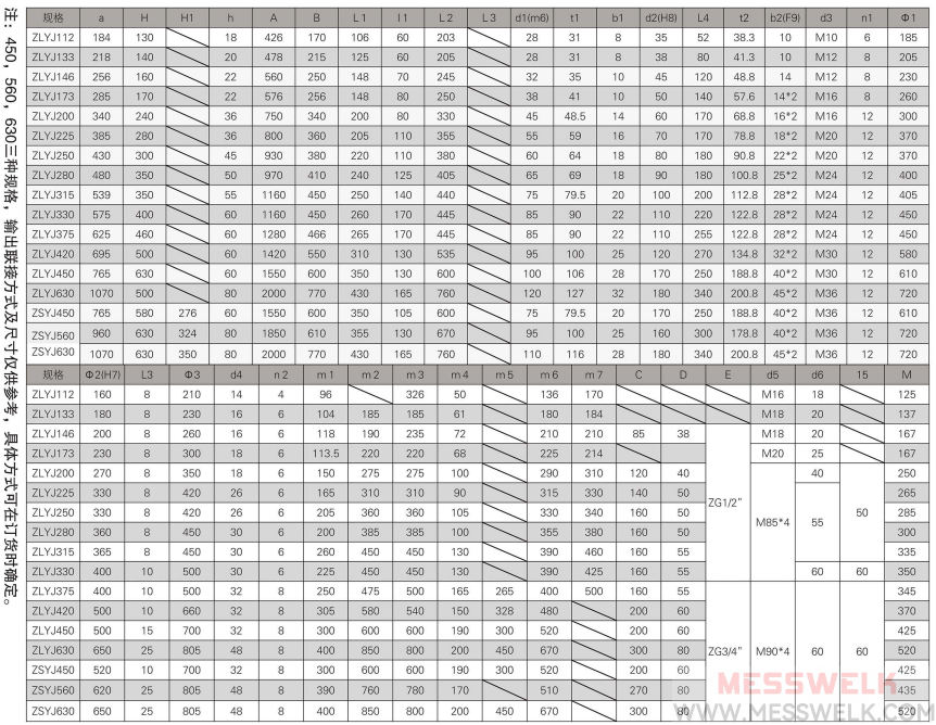 | ZLYJ450 | 有 | 无 | 有 | 配置冷却器应在订货时声明 |