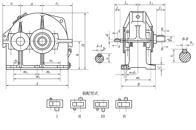 ZDS型少齿数渐开线圆柱齿轮减速机型式及主要尺寸JB/T5560-1991